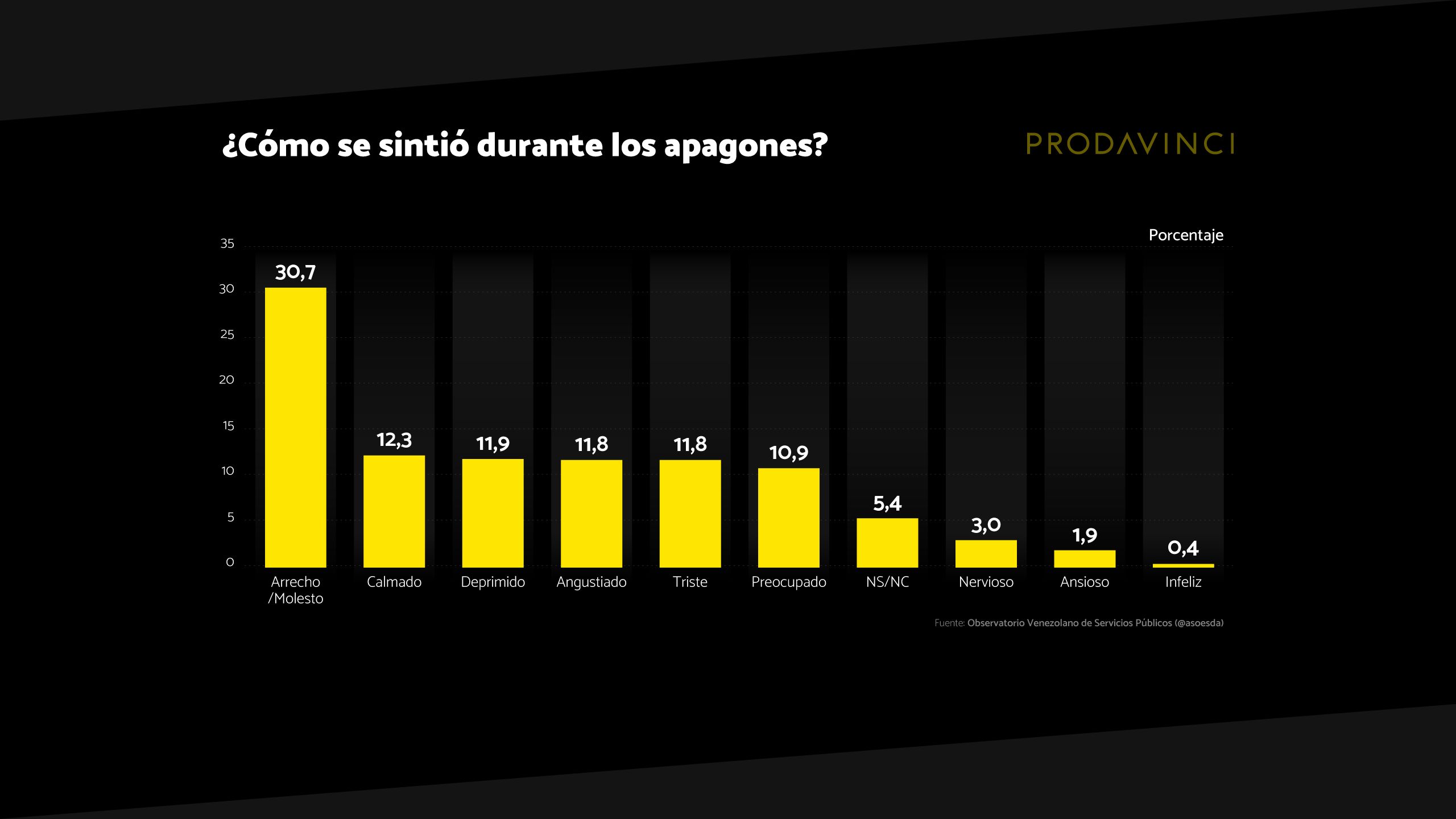 La encuesta arrojó que uno de tres venezolanos se sintió “arrecho o molesto”, una emoción que experimentó casi el 40% de los habitantes de Porlamar y Maracaibo. En Mérida, solo un quinto de los entrevistados afirmó sentirse así.
